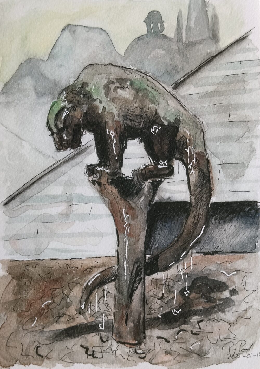 Das Original (Aquarell und Tusche) entstand während meiner Besuche in Aachen und gehört zu einer Reihe weiterer Ansichten Aachens.